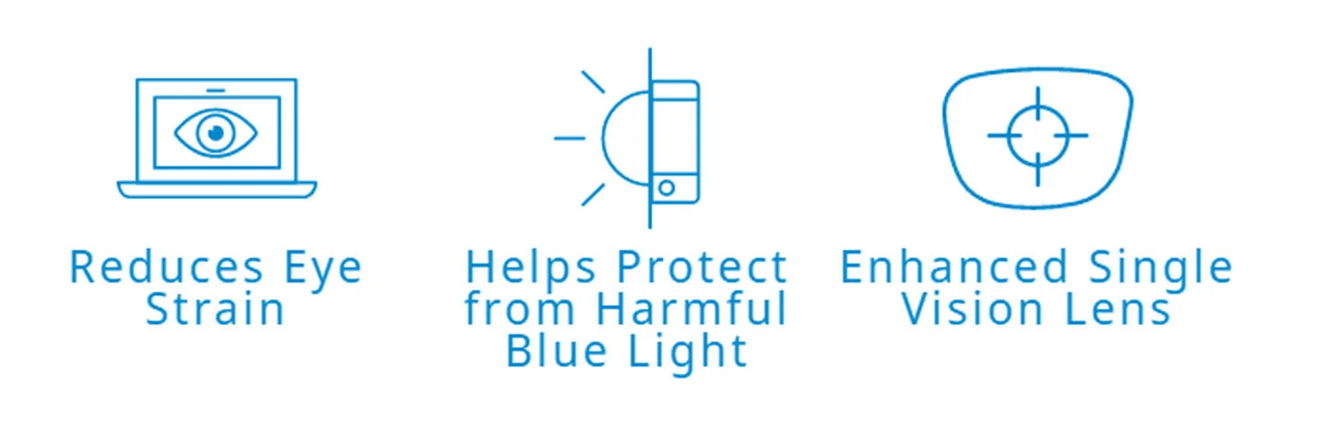 At Corona Vision we offer THE LATEST TECHNOLOGY IN EYE STRAIN DEFENSE the newest enhanced single vision lens helps reduce eye strain caused by close viewing of devices like cell phones and tablets. It also utilizes the Smart Blue Filter™ feature, which reduces exposure to Harmful Blue Light. With four unique designs, patients of any age can benefit from Eyezen™+ enhanced single vision lenses. This computer glasses are exclusively available from independent eyecare professionals.